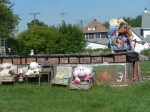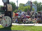 Tyree Guyton has been a pioneer in urban renovation with the Heidelberg project since the mid eighties and it’s already world famous, but how to resist taking a few more pictures of such an interesting installation. Several people came by while we were there to wander through and do the same, even a police officer! Obviously the reasons that led to this amount of open space available are not ones that anyone would repeat intentionally, but it definitely feels inviting if you like to intervene creatively in your surroundings. Such as in the work of Monica Canilao (although from California not Detroit) she also uses recycled materials, found objects and has a wonderful mural on Gratiot Avenue from last year.