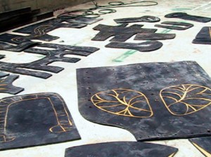 Rubber cutouts in the workshop, 2004